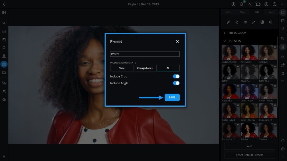 Edit your photo using any of Mylio Photos’ available presets and adjustment tools. When finished, scroll up to the Presets section and click the Add button at the bottom of the Presets list.