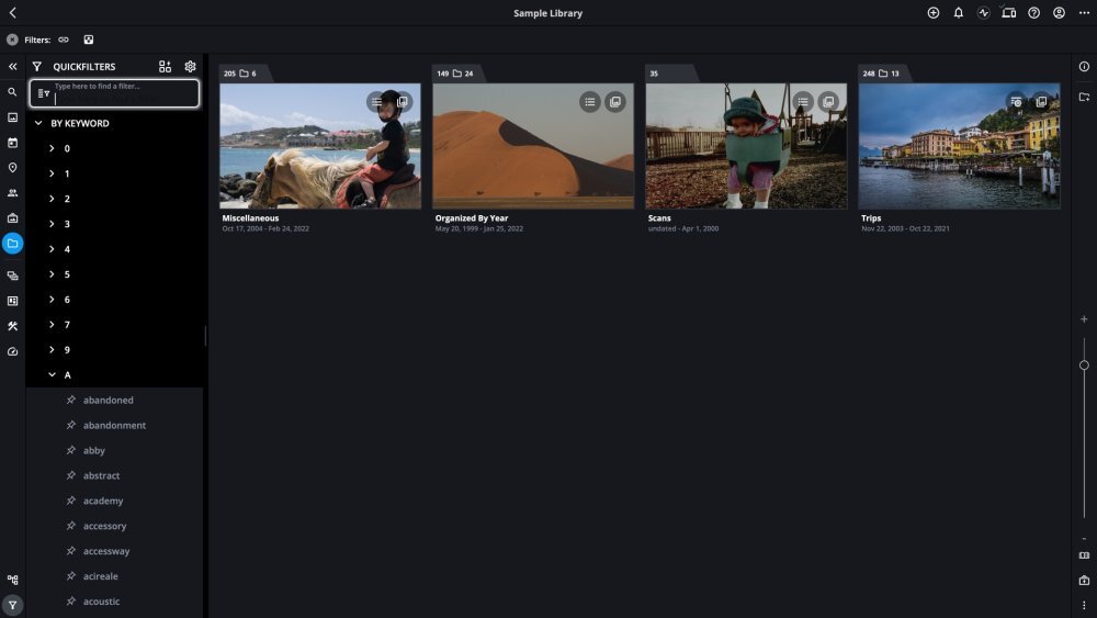 The By Keyword section in QuickFilters provides an organized list of all the keywords you’ve applied to your photos, displayed in alphabetical order. By simply clicking on a keyword, you can instantly narrow down your view to include only the images tagged with that keyword.