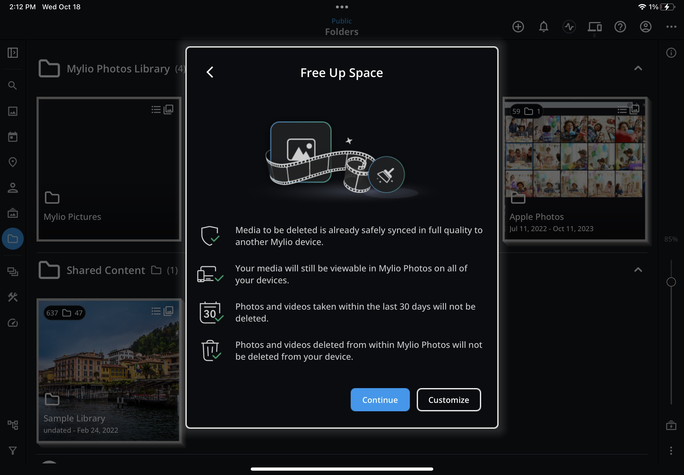 Learn More: https://manual.mylio.com/topic/free-up-space-on-camera-roll-or-media-library