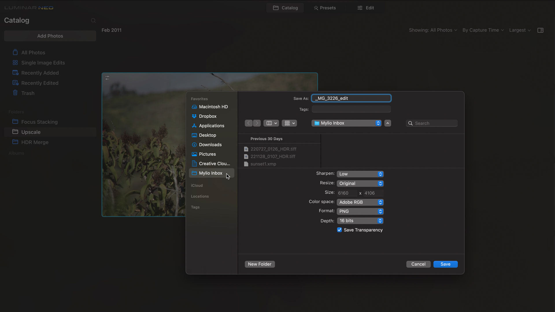 Open the Mylio InBox folder to view your exported file(s) and organize them within Mylio Photos.
