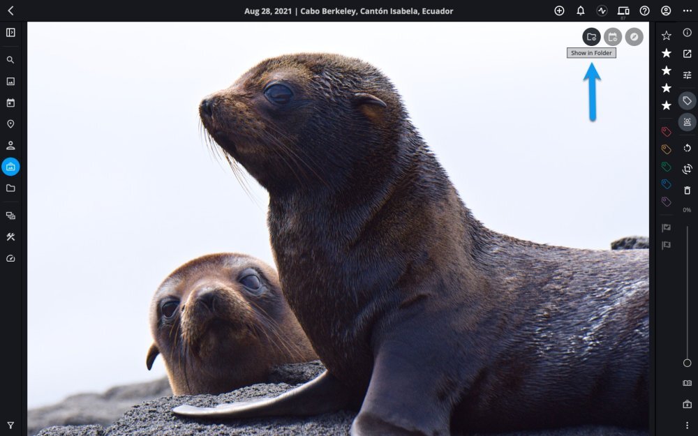Show in Folder makes locating where an image is stored easy so you can browse related media.