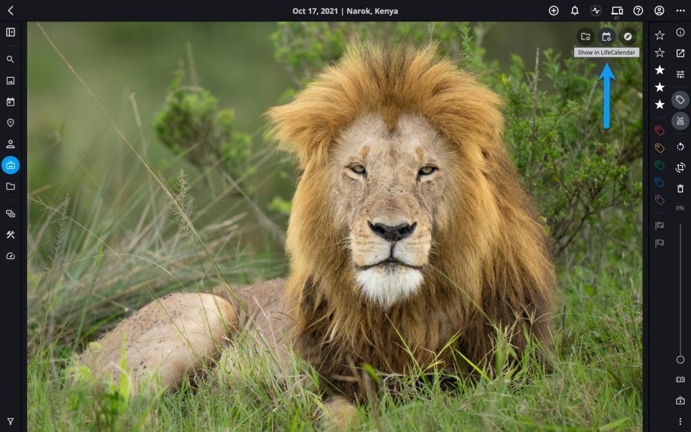 in the upper right corner of the photo to switch to the Calendar view and browse media captured the same day.