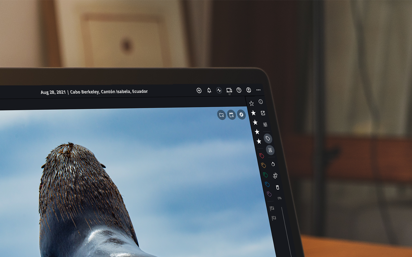 When viewing an image in single photo view, you may notice small icons in the upper right corner of the picture. Click on each of these icons to explore related media.
