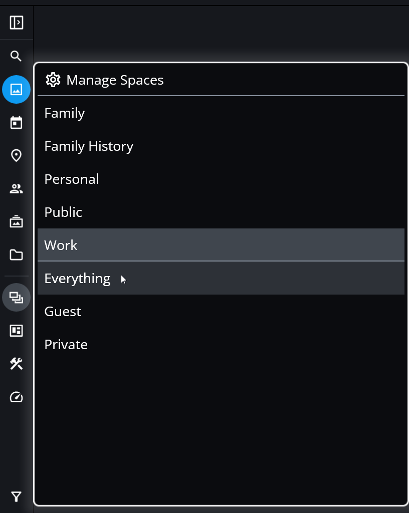 Spaces control what parts of the library are visible to a specific user or device. If you’re in a limited Space, some folders or albums may be hidden.