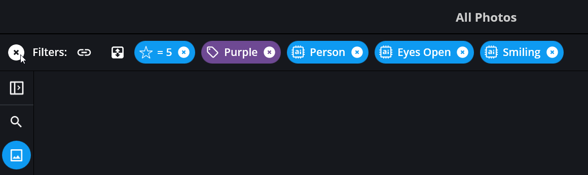 QuickFilters allow you to refine your view by criteria such as date, file type, folder, rating, label, and more. If a filter is active, it may be hiding some of your media.