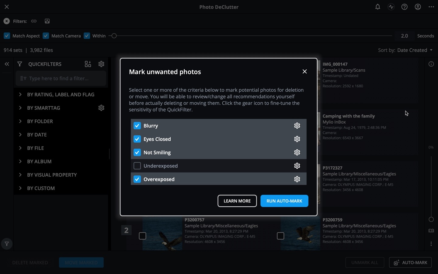 When enabled, Auto-Mark will use AI technology to scan similar files and determine the best photos to keep based on your selected criteria.